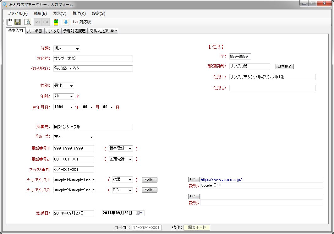 簡単操作で個人の趣味から顧客情報まで管理できるソフトです。