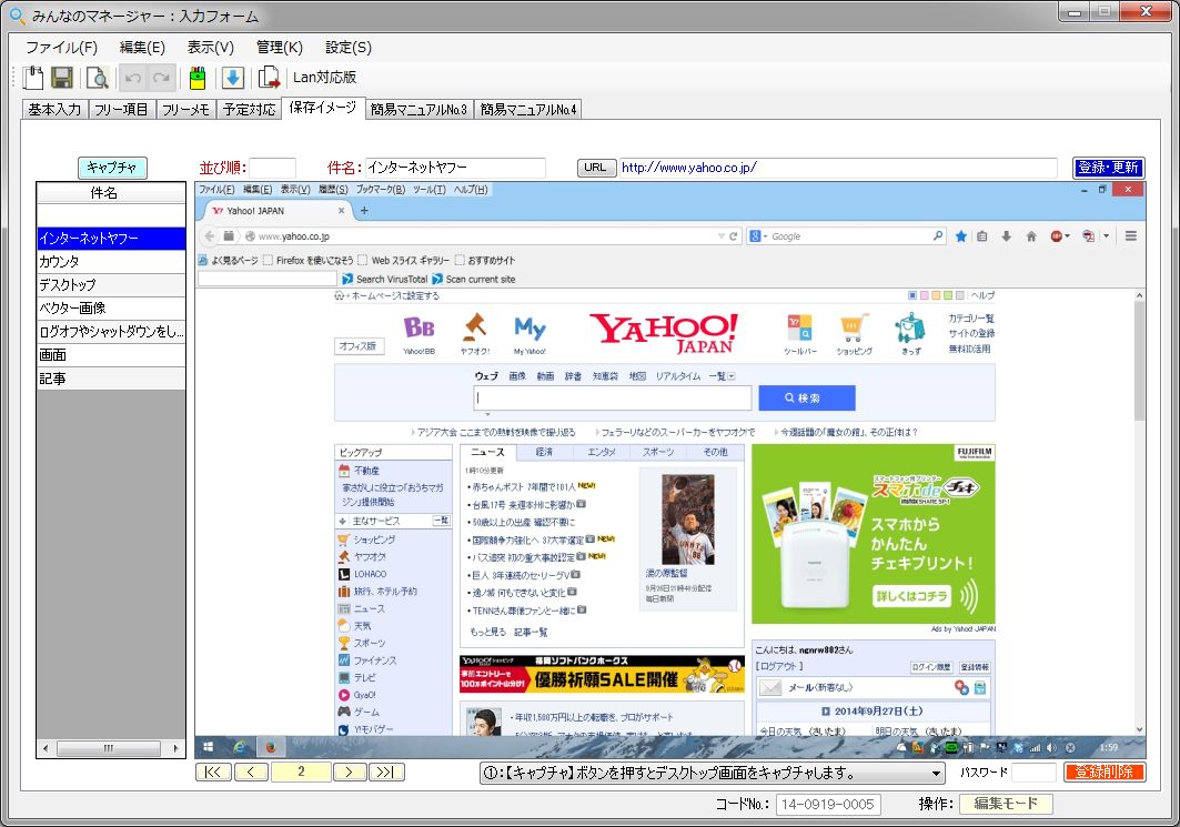 ・「入力フォーム:保存イメージ」タブのキャプチャ処理の操作メッセージを非表示にしました。