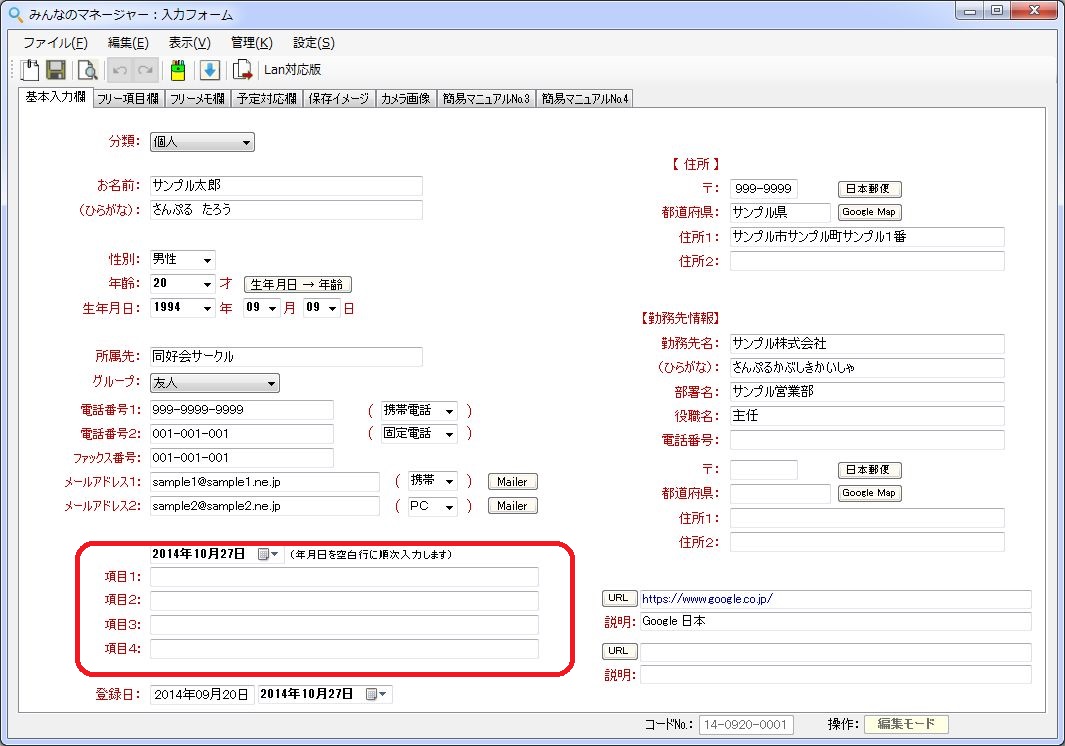 ・「入力フォーム:基本入力欄」タブに項目1〜4を追加しました。